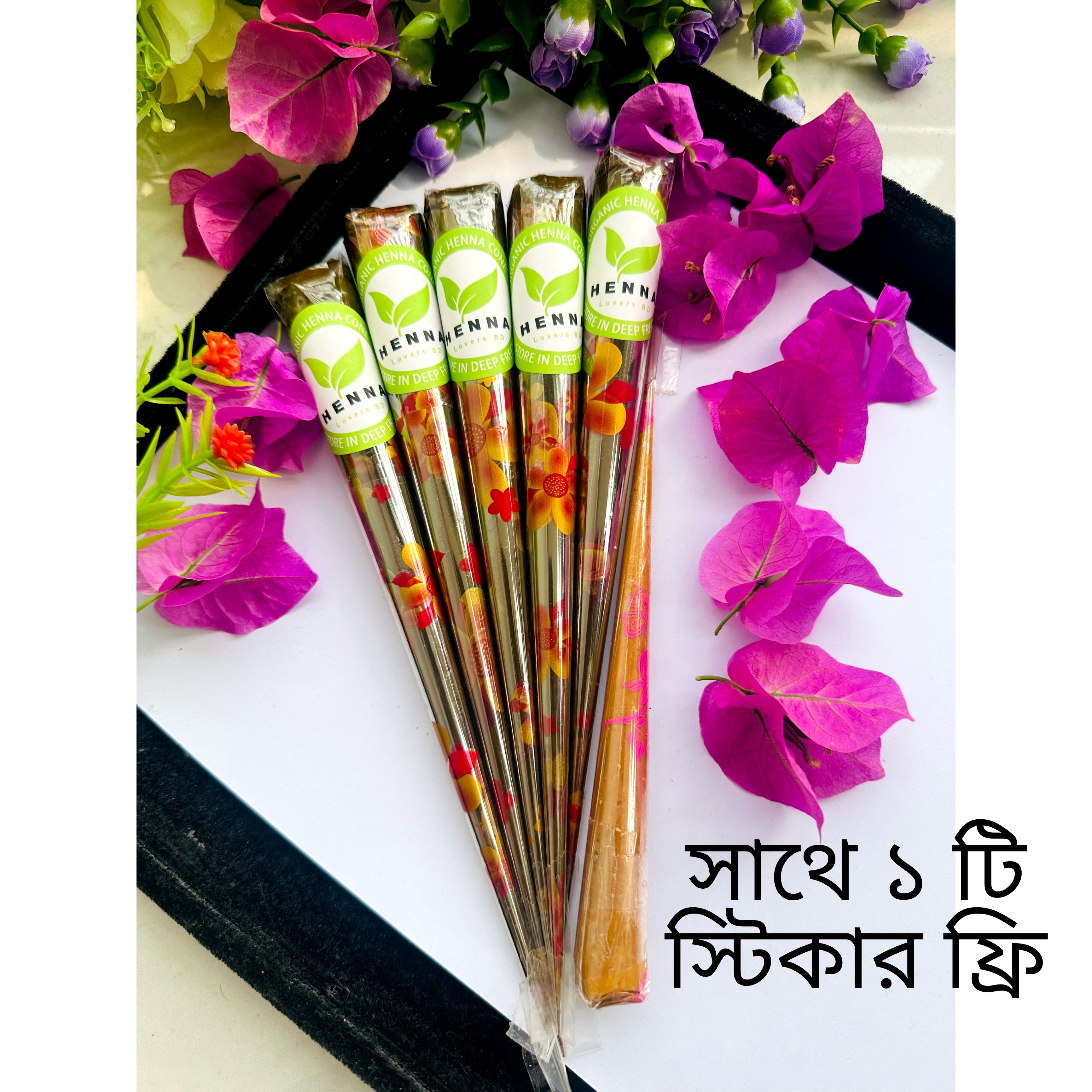 ৫ টা কিনলে ১ টা ফ্রী ও ১ টা স্টিকার ফ্রি ( ৫ পিস হাতের বড় সাইজের মেহেদী এর সাথে ১ টা নখের ফ্রী ও ১ টা স্টিকার ফ্রি )