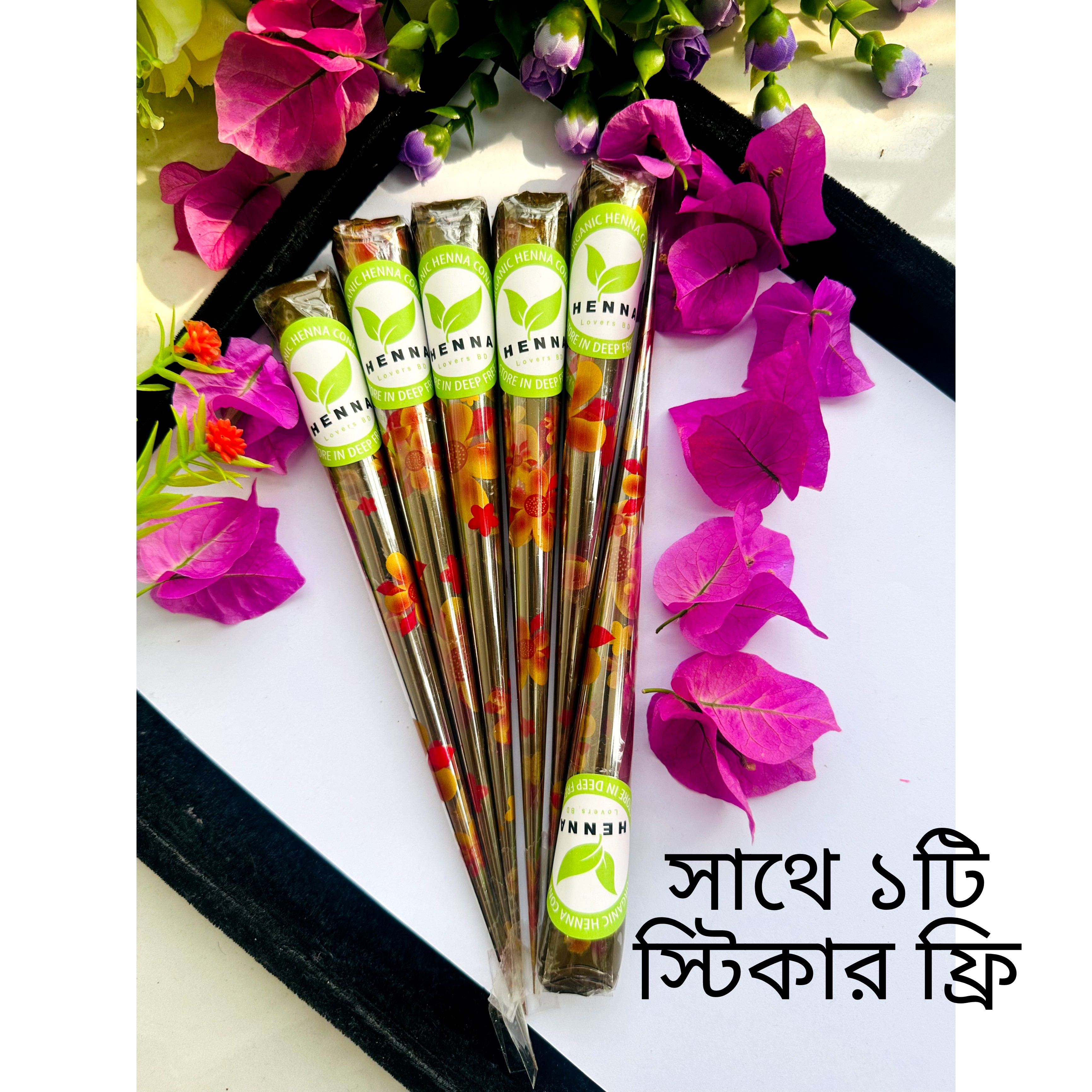 ৫ পিস বড় সাইজের হাতের মেহেদী এর সাথে ১ টা বড় সাইজের মেহেদী ফ্রী ও ১ টা স্টিকার ফ্রি এবং ডেলিভারি চার্জ ফ্রী।